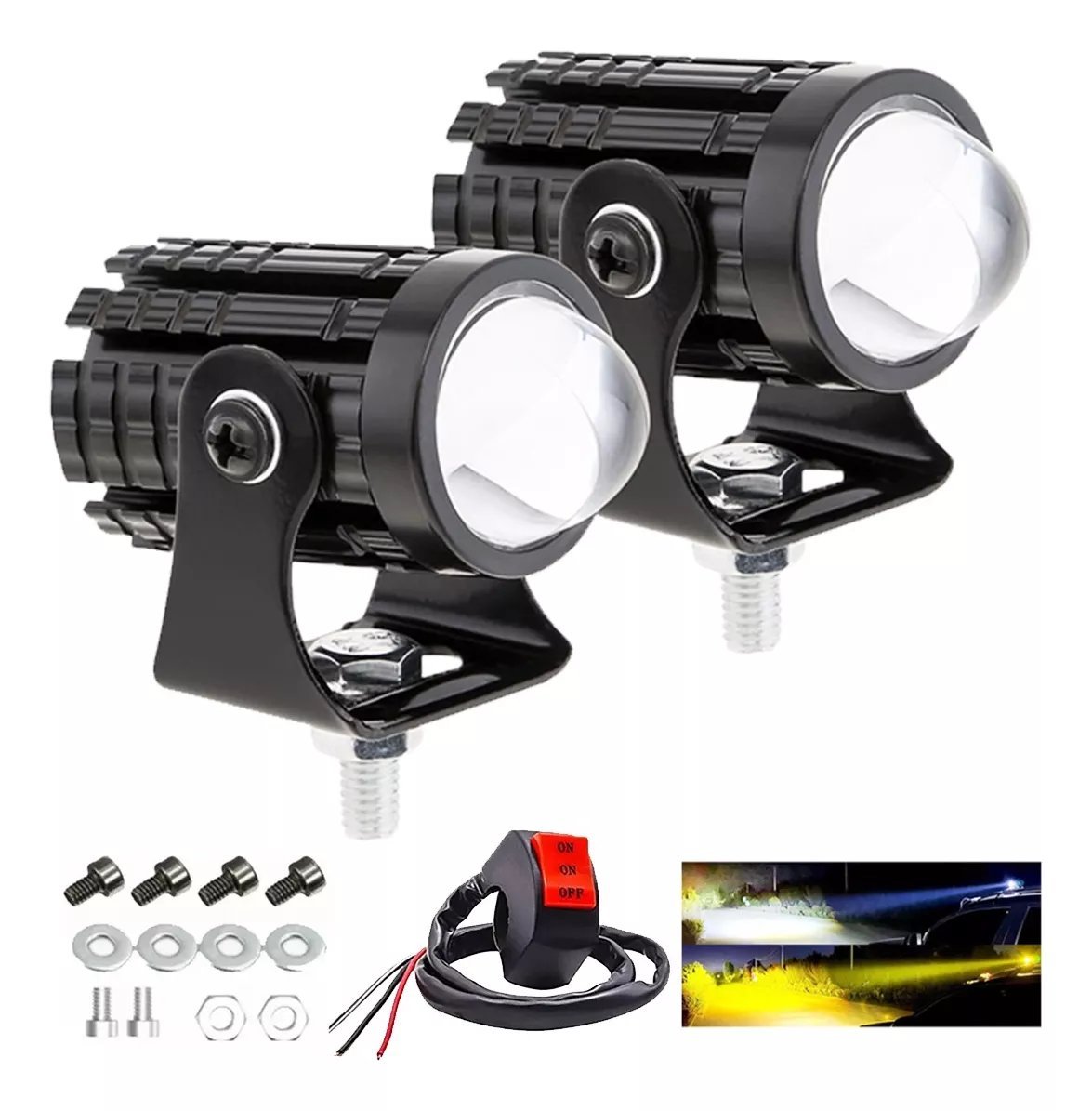 Super bright dual color motorcycle spotlight, yellow and white dual light, one light for two purposes, special design, with switch, easy to install, high quality aluminum material, wide range of uses. Accompany you to drive safely at any time.