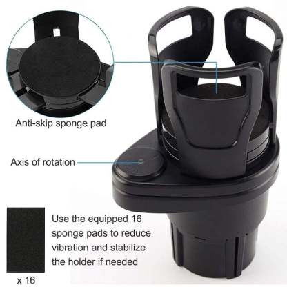 【Excellent Stability】To avoid balancing while riding, the top car cup holder has anti-skid pads that absorb shock, and you need to place the gap between the mounting position and cup holder base using the included EVA sponge pad. This provides anti-rattling, reduced vibration, and more stable cup holder