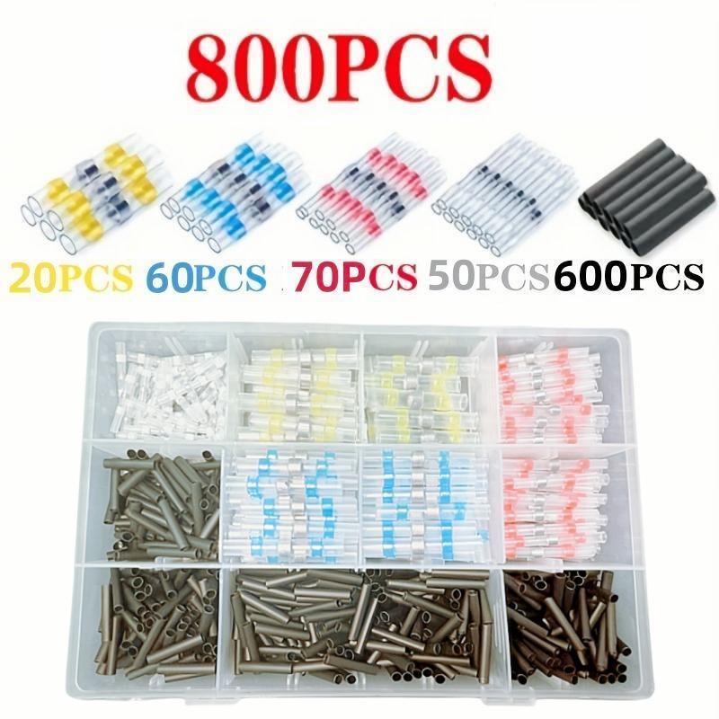 800PCS Heat Shrink Butt Crimp Terminal Kit, Waterproof Solder Seal Electrical Connectors