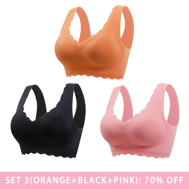 【SEAMLESS BRA】Boofine Seamless and breathable material, very thin and soft, No hardware, no wires, all comfort. Zero suppress the chest without elastic underwire.Seamless bra has large elasticity, Medium&Large Size, suitable for A-E Cup, Choose a bra that fits your size.