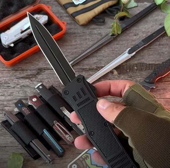 This knife features a sliding trigger that can be used with either hand. The handle is designed with ergonomic contours and thumb ramps, allowing for quick one-handed operation, enabling the blade to deploy and retract automatically for seamless action. The user can react swiftly in critical moments, always prepared for unexpected situations. Additionally, it is equipped with a reliable locking mechanism that prevents accidental closure, ensuring safety during use.