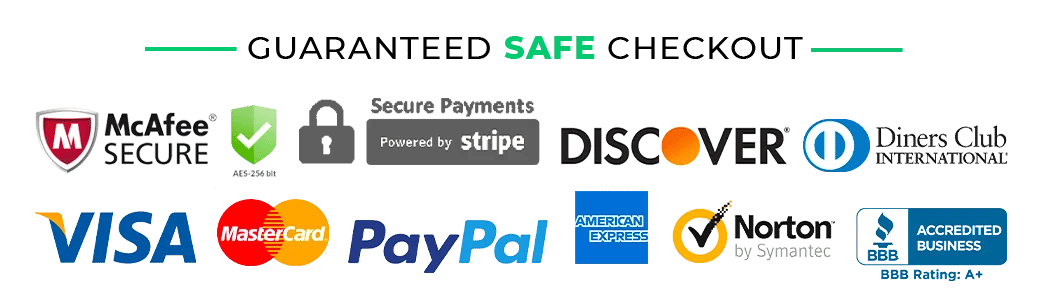The Checkout Process is Guaranteed to be 100% Safe and Secure with Visa, Mastercard, AMex, Discover, Apple Pay or PayPal.
