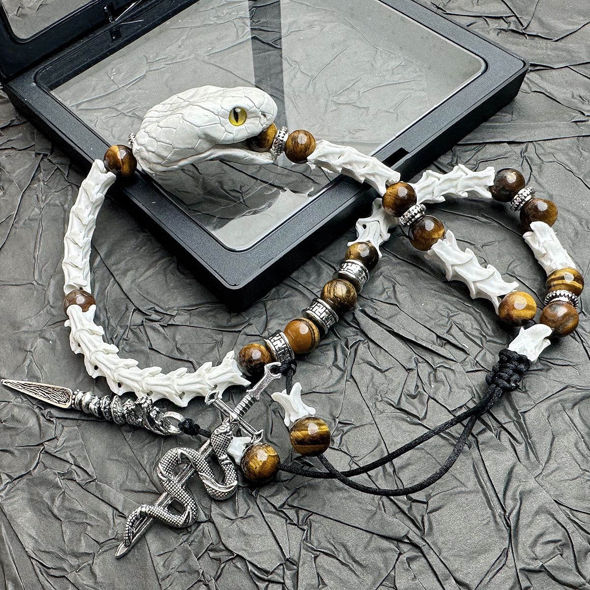 Authentic Snake Spine Bracelet with Carved Head – Dark Aesthetic Handmade Jewelry
