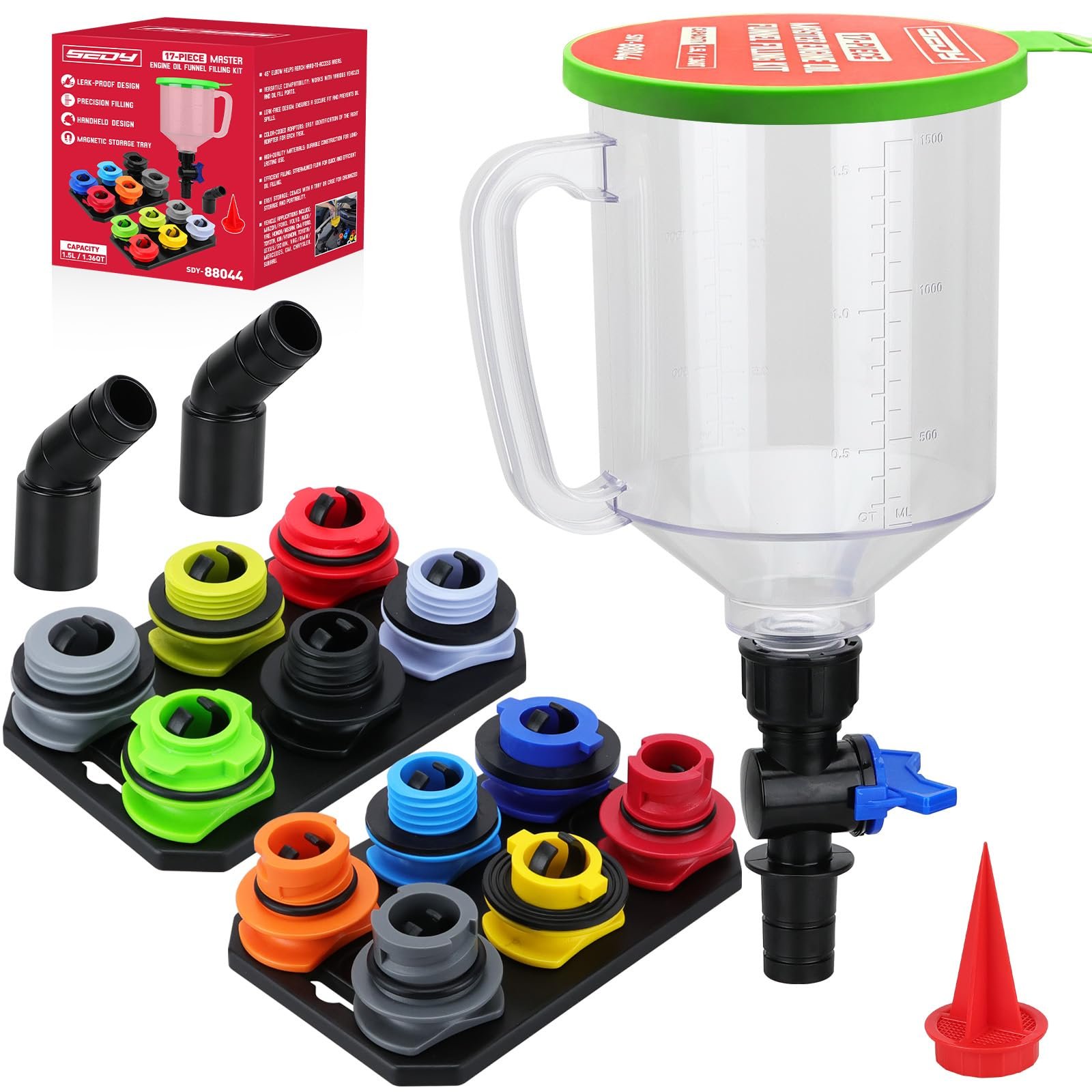 đ„Last Day 47% OFF - 17-Piece Engine Oil Funnel Set, 1.36 qt Automotive Oil Funnel Kit with 12 Adapters