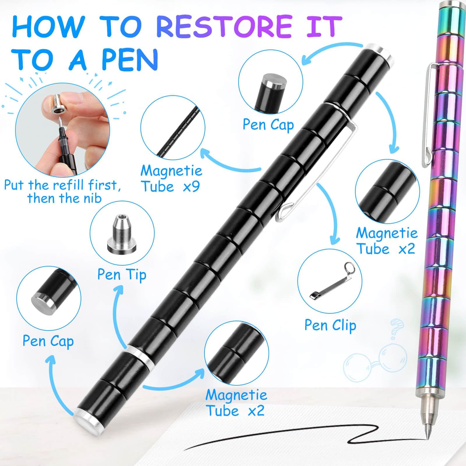 ✨【Fusion of Tools and Toys】Our magnet pens combine practicality with magic to make writing fun! Lightweight and easy to use, these fingertip pens are both practical and stress-relieving. Perfect for teens who need a break or relaxation. It can take on a variety of shapes according to your imagination, such as swords, robots, monsters, etc.