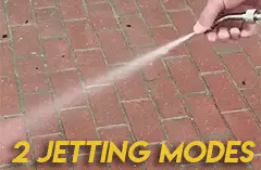 Powerful jet nozzle can be used for cleaning purposes like rinsing off tough stain, mold, mud, dirt etc. Gentle fan nozzle is great for washing/spraying over a large area, which is ideal for garden watering, washing etc.