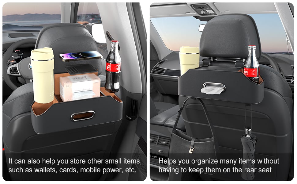 • 1x Backseat Organizer (Cup Holders + Tissue Box Slot + Hooks)