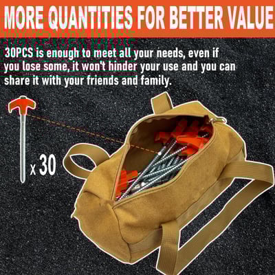 ⛺【MORE QUANTITIES FOR BETTER VALUE】30PCS camping stakes is enough to meet all your needs, even if you lose some, it won't hinder your use and you can share it with your friends and family.