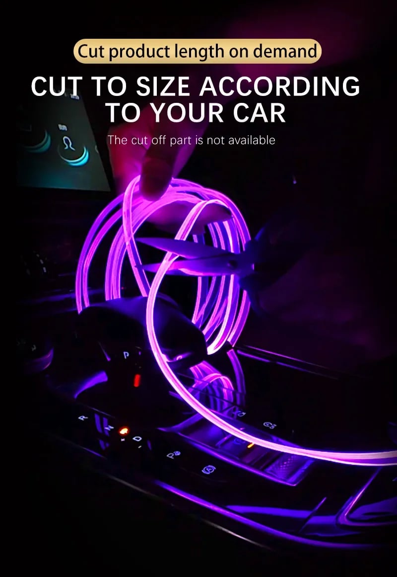 🚘Cuttable & Flexible Fiber OpticHigh Fiber Optic with 1-3mm thickness fin, easily fix the fiber optic into the gag of door panel. With 1mm clip, make the fiber optic coincide with the gap of door panel, firm, not easily fall off. Installation: using the scraper to fix the fiber optic into the gap of door panel. When cutting, make sure that 12mm is fully inserted into the light source, and then cut the fin.