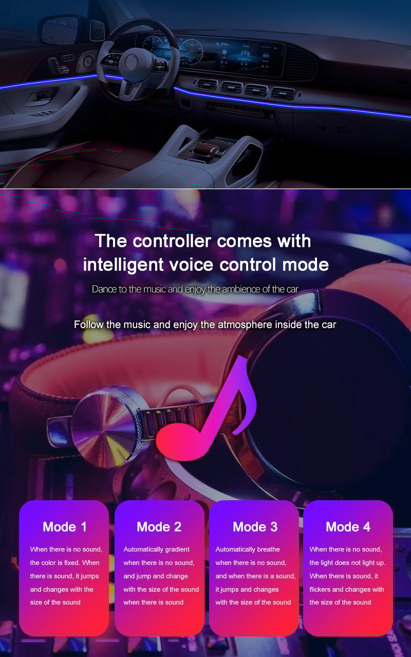 🚘【Easy Installation】The interior atmosphere light strip can be easily inserted into the space or gap of the car dashboard and interior panel or into the groove, which is very suitable for decorating the interior of the car, such as door and dashboard, etc.