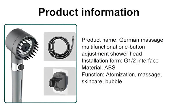 🇩🇪 German Massage 🌊 Multifunctional 🚿 One-Button Adjustment Shower Head 💦