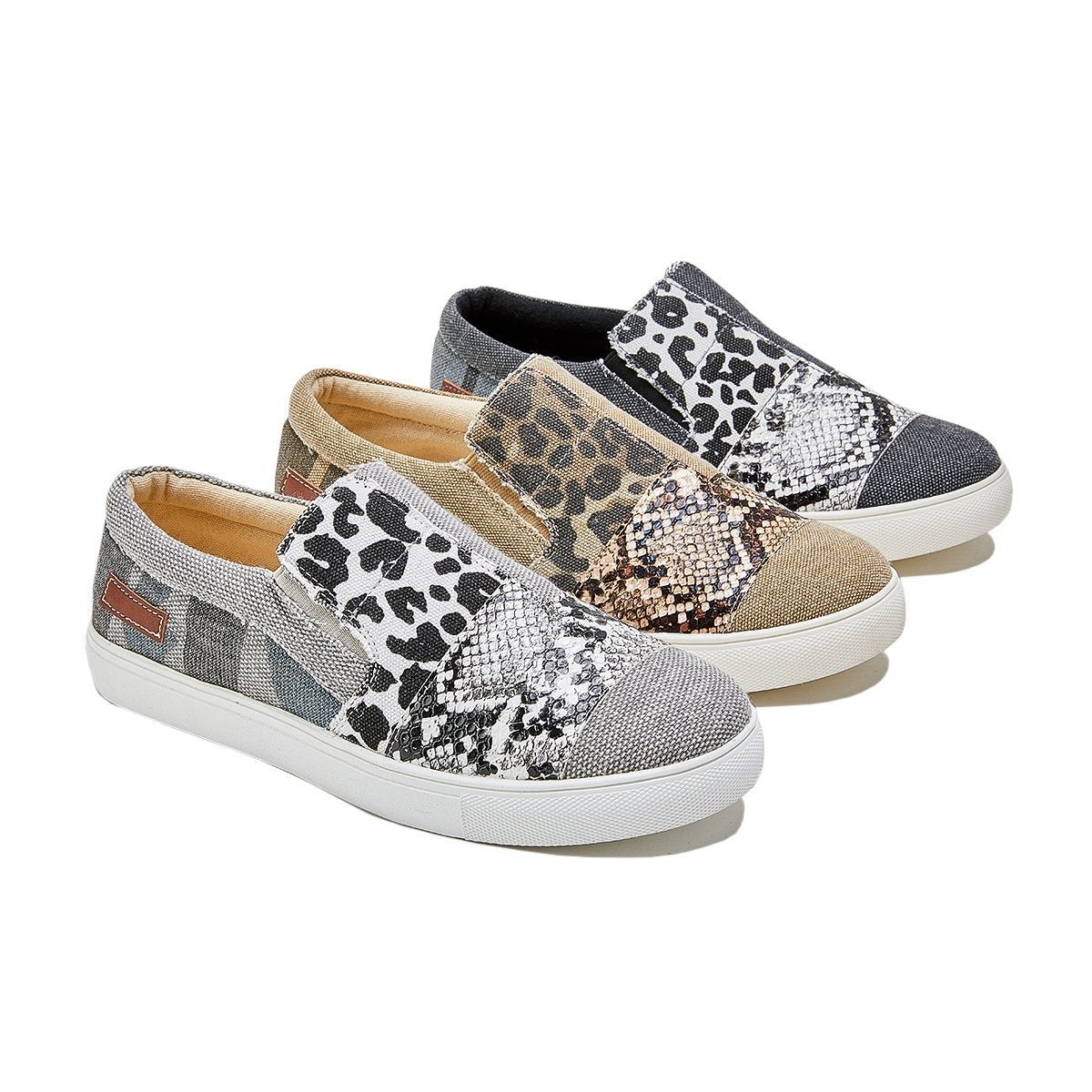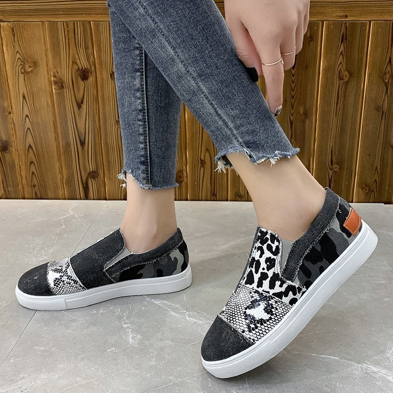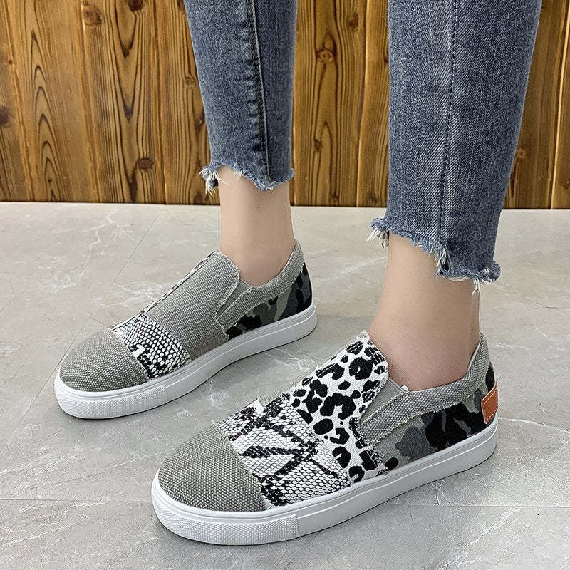 Women Gray Sneakers Casual Raw Edge Canvas Sneakers Slip-on Flat Sneakers