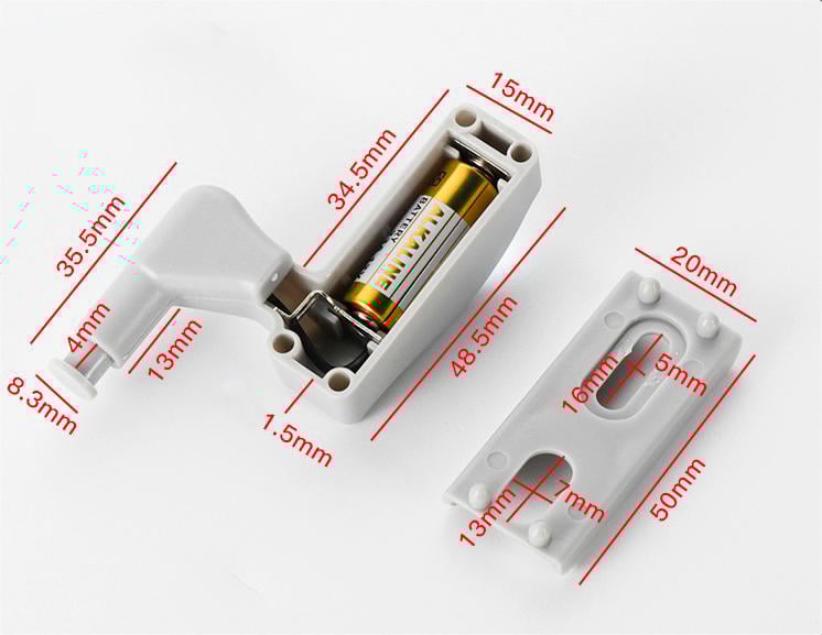 • Our hinge light has 3pcs LED beads and it is operated by 23A 12V battery, having properties of high brightness and lower power consumption, it is really a practical and affordable cabinet light.