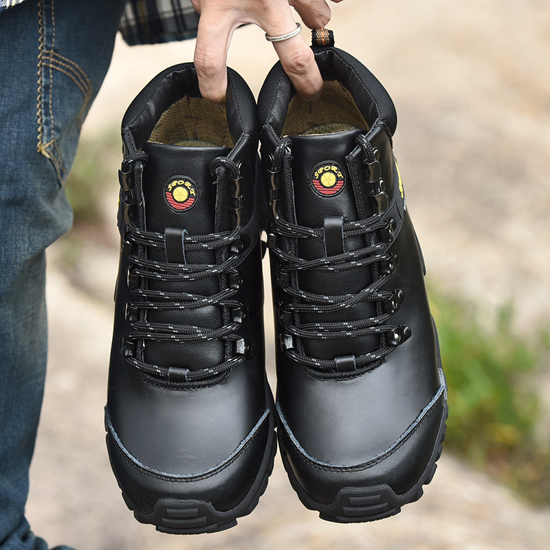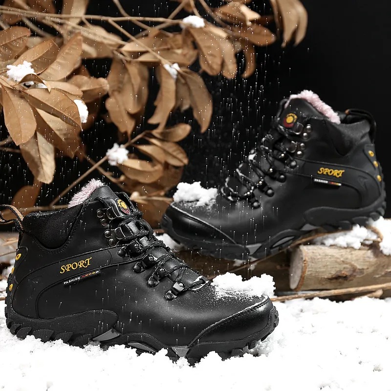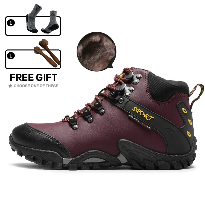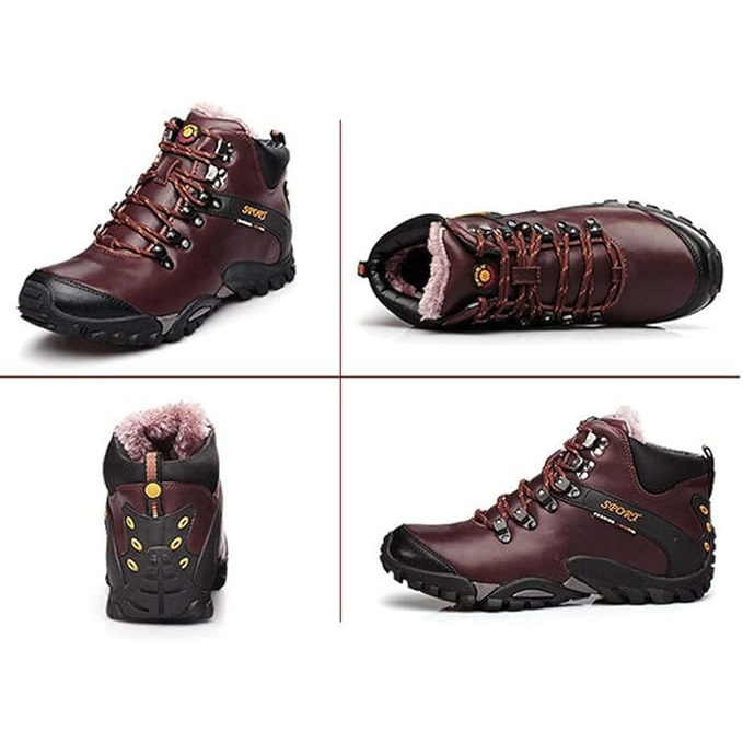 (⏰Limited Time Sale 69%off)Men's Genuine Leather Waterproof Hiking Boots Wide-Toe Warm Insulated Winter Ankle Boots