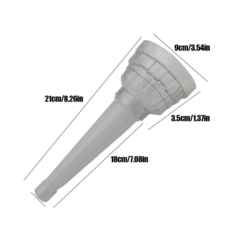 • UNIVERSAL STYLE: The diameter of the top opening cover of the funnels for automotive use is 3.74 inches, and the height is 3 inches; The bottom diameter of the funnel handle is 0.9 inches and the length is 9.8 inches. The universal style enables the vast majority of car, truck, SUV, motorcycle, off-road vehicle, and van owners on the market to use it perfectly.