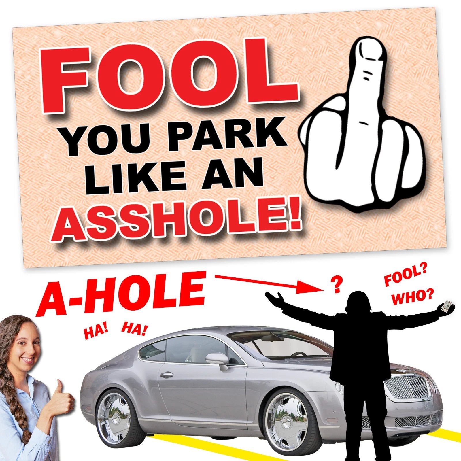 • "You park like an Ahole!" in bold impact font → no misinterpretation 🚫