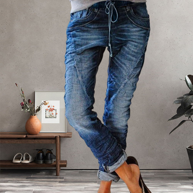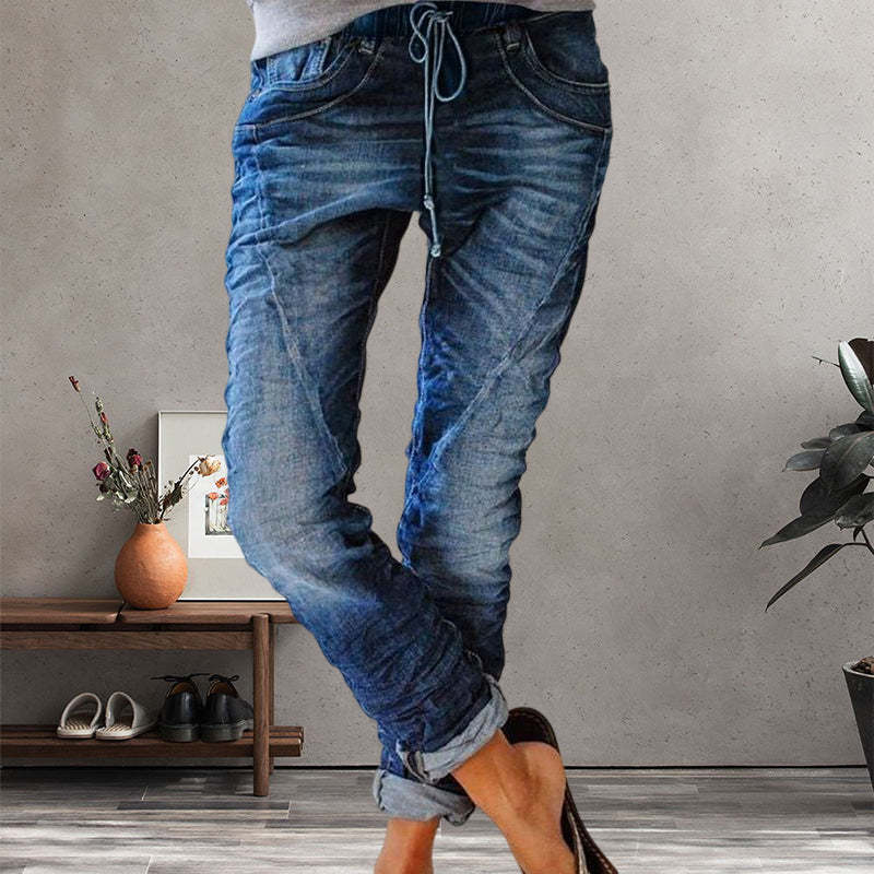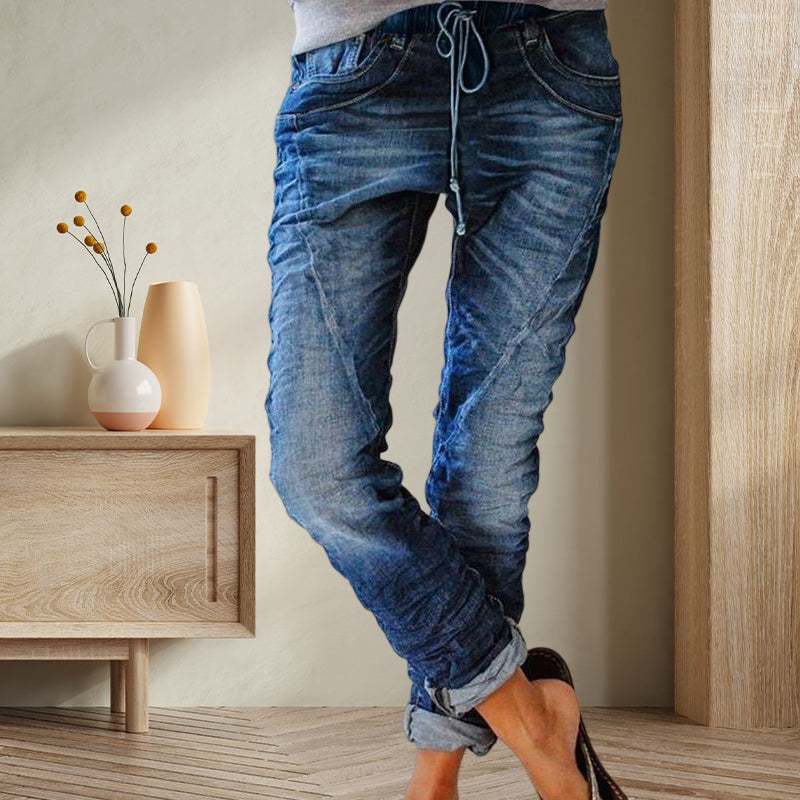 Ripped Drawstring Elasticated Waist Washed Jeans