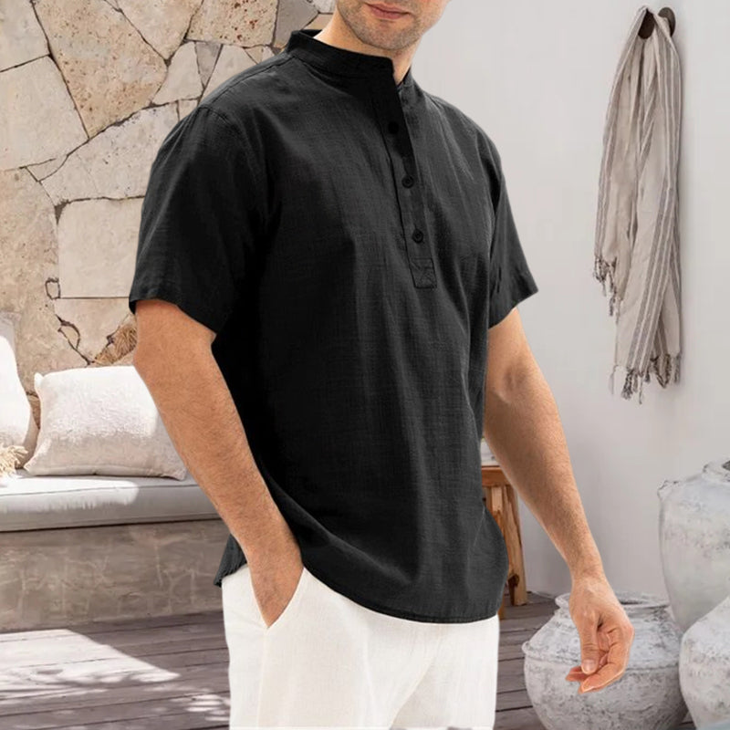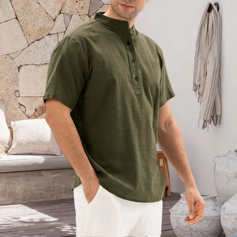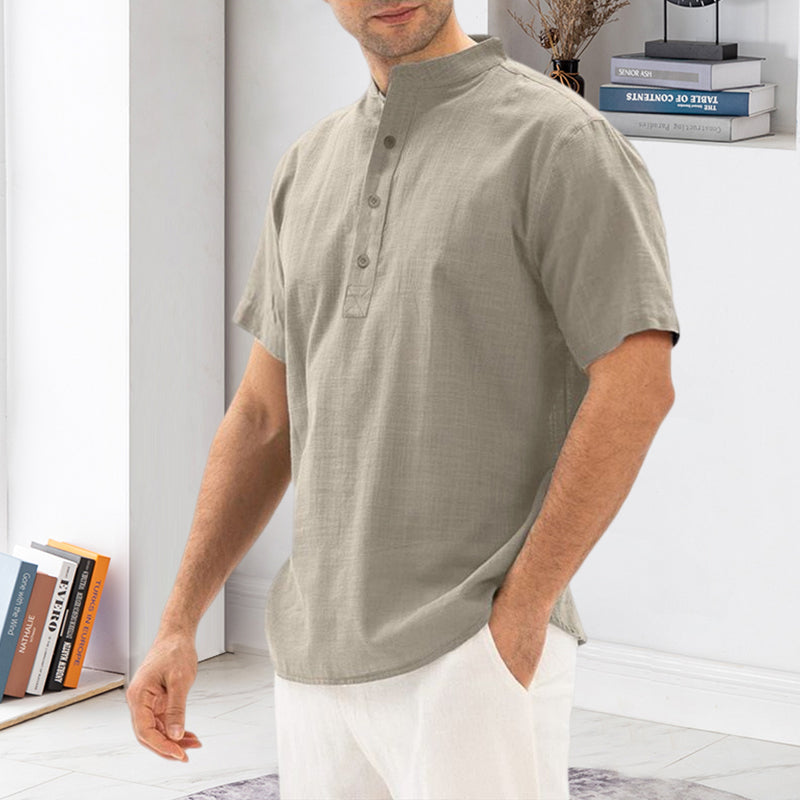 Solid Color Stand Collar Pullover Shirt