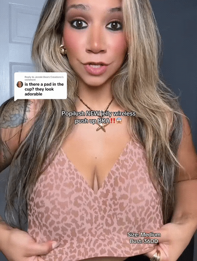 Popilush Wireless No Underwire Leopard Print Jelly Bra Everyday Comfort Push Up Seamless T-Shirt Bra with Minimizer & Adjustable Straps Fit Minimalist Fabric Womenswear Soft Fit Smooth Yarn Basic Lady Underwear #tiktokshopholidayhaul