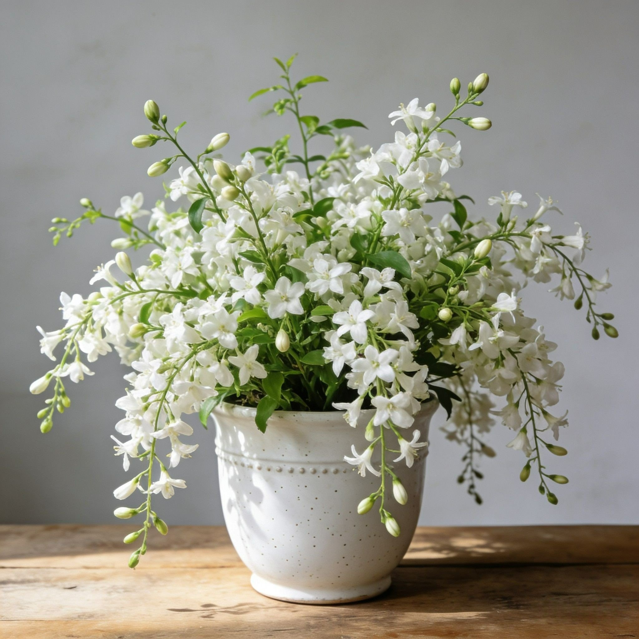 Trailing Jasmine is the chameleon of your garden! Grow it as a climbing vine on trellises, fences, or arbors to create a stunning floral backdrop; plant it in hanging baskets for cascading white blooms that dress up your porch; or use it as a ground cover to add texture to flower beds. It even thrives in containers—perfect for small balconies or indoor windowsills (yes, it blooms indoors too!). Your only problem will be choosing where to plant it first!