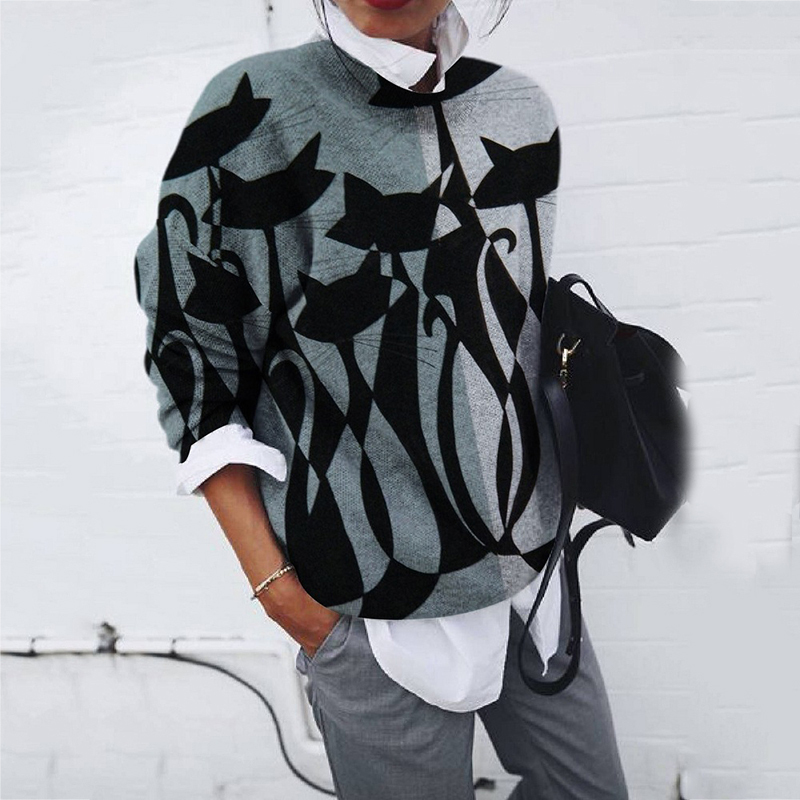 Trendy Brushed Animal Print Loose Long Sleeve Top