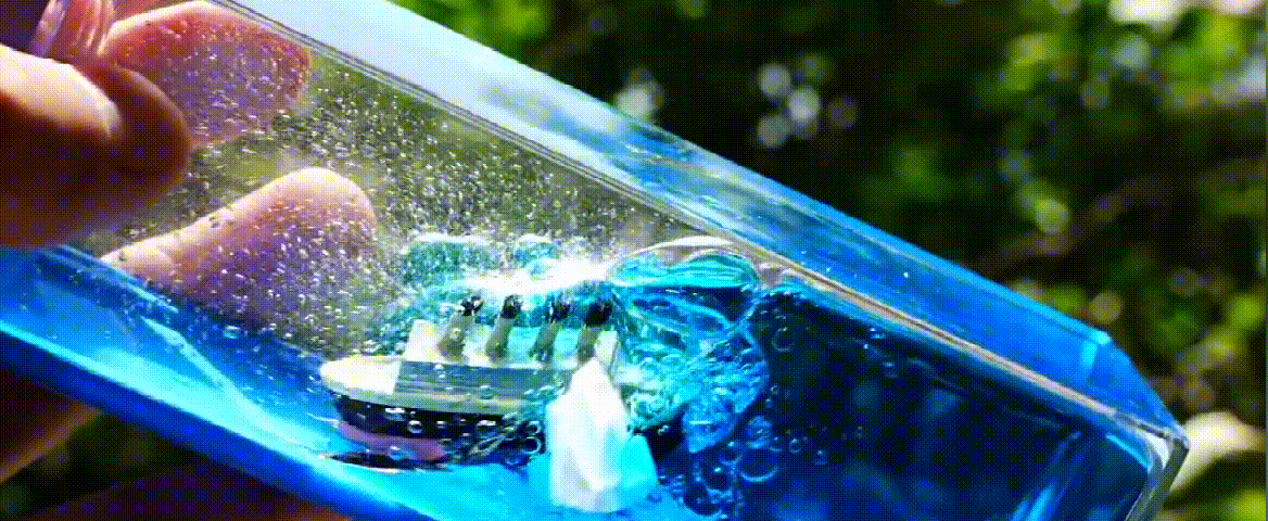 The outer layer is made of high-quality acrylic, It has crystal-like transparency, soft light, clear vision. The cruise ship and iceberg are made of resin, and the built-in seawater is pure water and vegetable oil to ensure it never sinks.