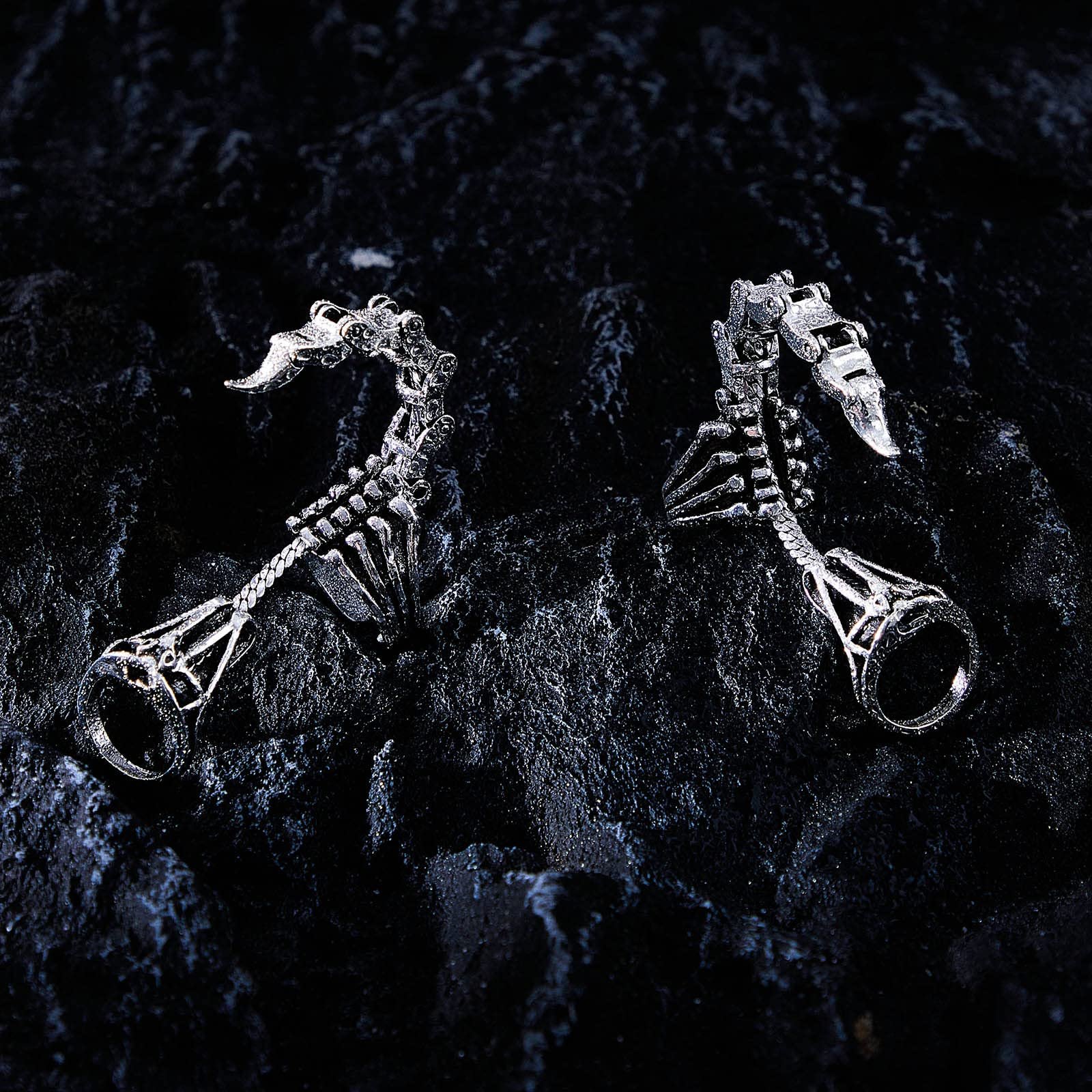 【GOOD QUALITY, PERFECT FOR A HIP LOOK】The gothic vintage scorpion ring is made of high quality alloy, with white gold plated, vintage style, Low allergy, not easy to rust or oxidize, will not turn your finger green. The vintage punk rings are sturdy, smooth inner face, comfortable wearing touch. There is a hinge between the ring and scorpion tail, when you release your finger it is straight, it will become a scorpion while you crook your finger.