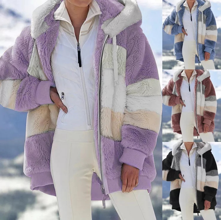 2022 autumn-winter new lamb velvet jacket with zipper pocket and hood