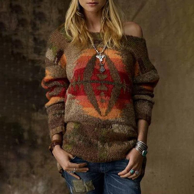 Vintage Rainbow Jacquard Long Sleeve Sweater