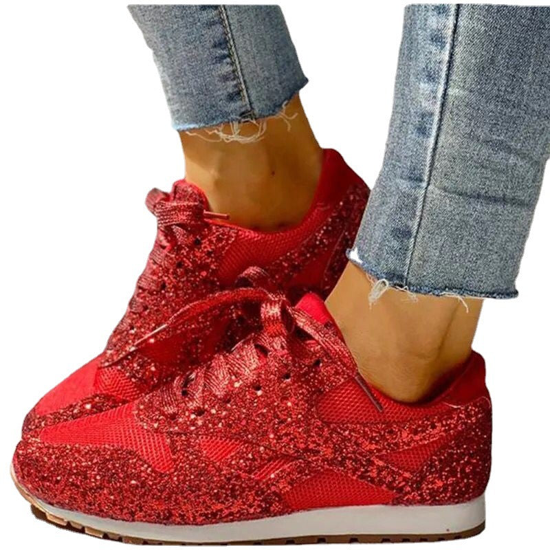 women's rhinestone lace-up sports shoes