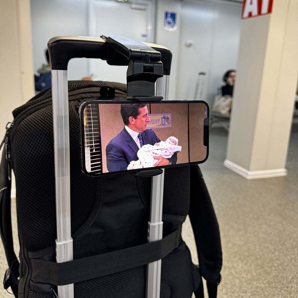 With a top phone clip that accommodates a maximum width of 3.9 inches and a base clamp with a maximum width of 1.4 inches, this travel phone holder is compatible with most smartphones available in the market.