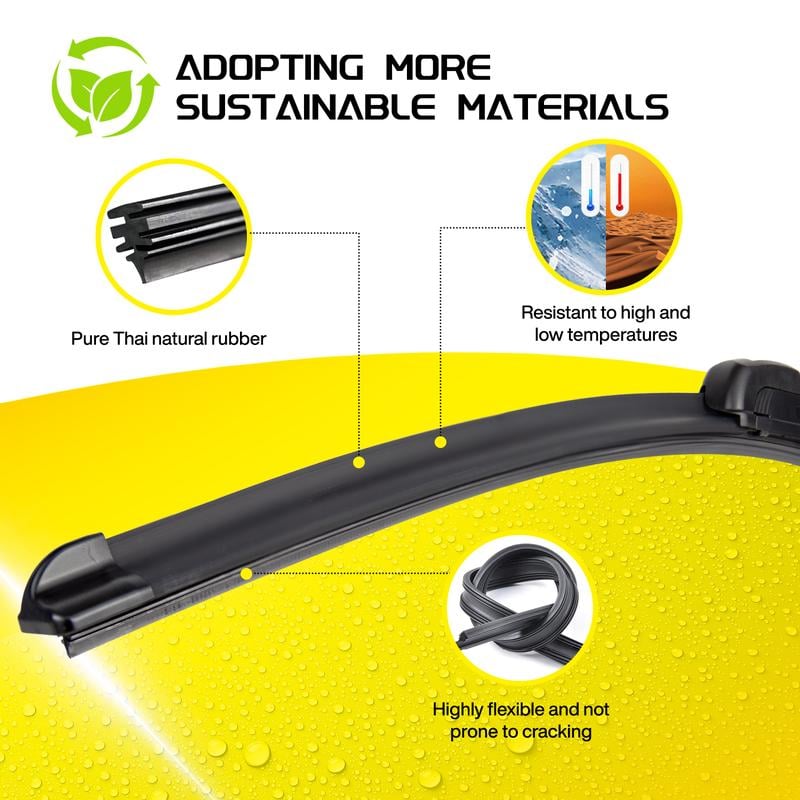 【High-Quality User Experience】:The longer and thicker wiper base and left and right buckles, as well as the award-winning unsupported beam design, not only make the wiper perform well in rain and snow, but also remain stable and quiet all the weather.