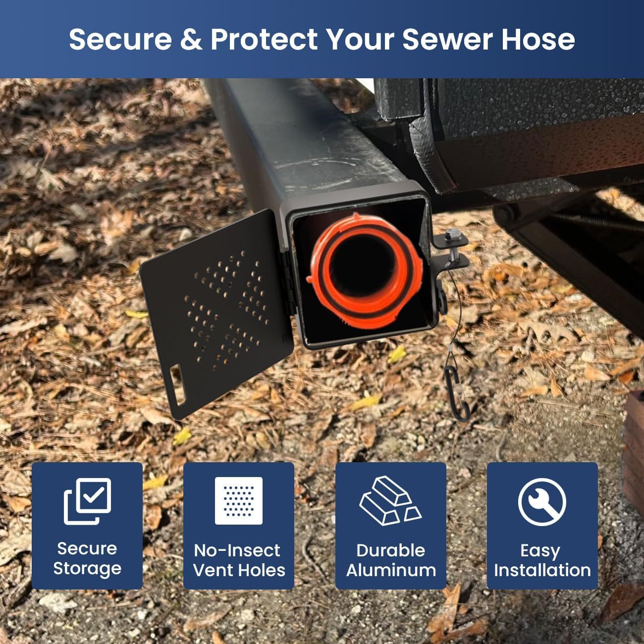 Made from high-quality aluminum, this bumper cap is weatherproof, rust-resistant, and built to last, providing long-term outdoor protection for your storage tube and sewer hose.