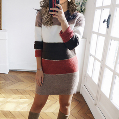 Casual Contrast Crewneck Sweater Mini Dress
