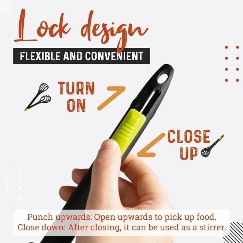 • 【Ergonomic & Practical Design】One-key opening and closing design make the whole cooking process easier and safer, it can prevent accidental falling (like eggs) efficiently. And the excellent eight-line design makes the mixing better and faster for liquid foods. This Multiple-In-1 kitchen tongs can meet almost all your cooking needs!