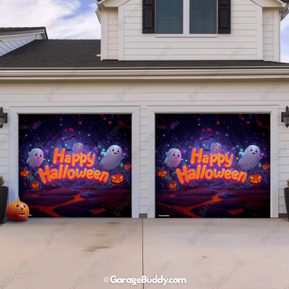 Featuring a chilling scene of eerie ghosts dancing under the moonlight, this Ghost Party Halloween Garage Door Cover creates a spooky yet festive vibe that’s perfect for Halloween night. The haunting silhouettes and spectral glow will send shivers down the spines of trick-or-treaters and neighbors alike. It’s the ultimate Halloween garage decoration idea for anyone who wants their home to stand out in the creepiest way possible.