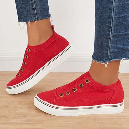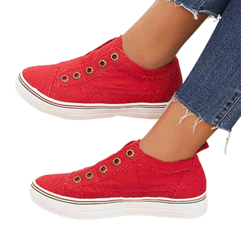 Women Red Canvas Casual Slip on Loafer Flat Sneakers Walking Shoes