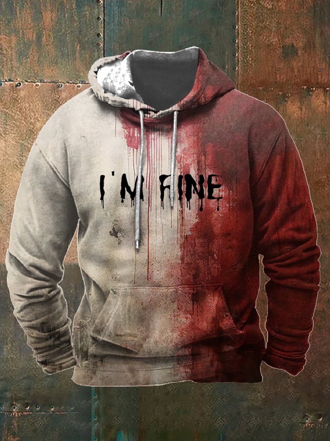 Men's Bloody I'm Fine Halloween Print Hooded Sweatshirt