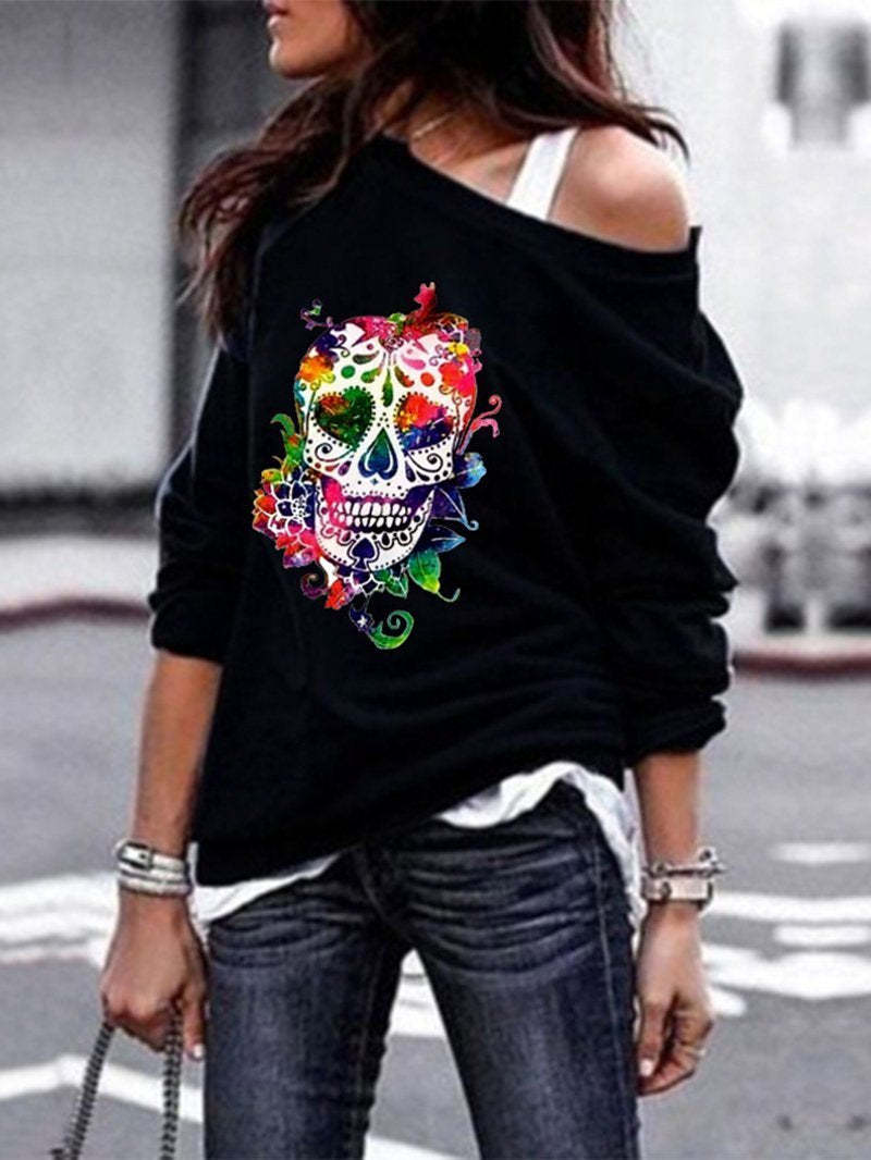 Round neck sweater women's skull print Halloween blouse