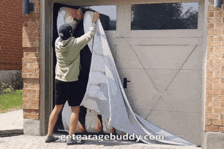 Hanging up our lightweight GarageBuddy creepy garage door cover is as easy as pie—and we're talking about the easy kind of pie, like the ones that come pre-made.