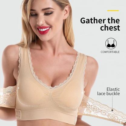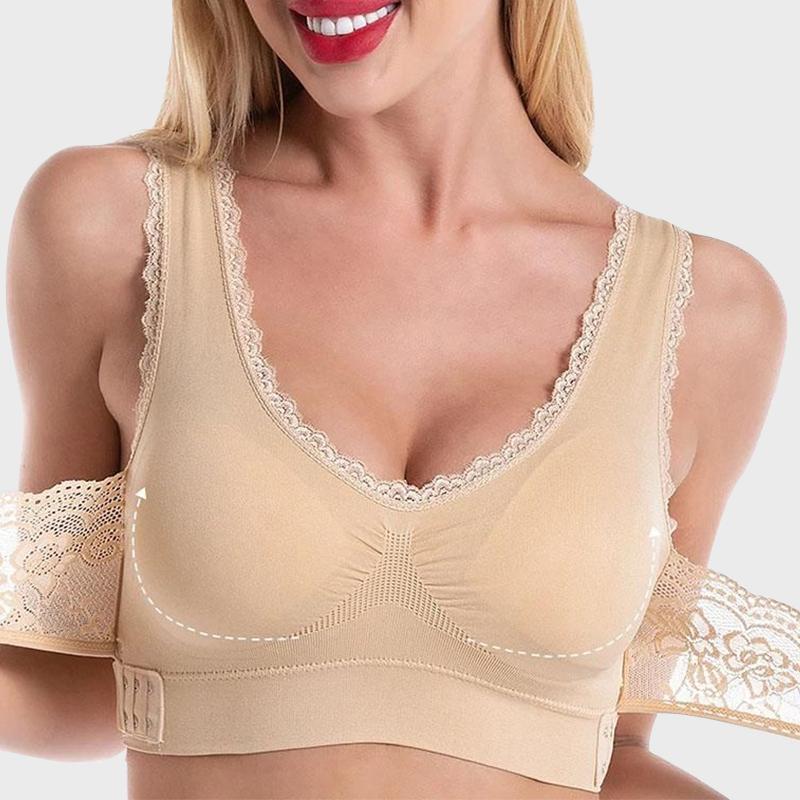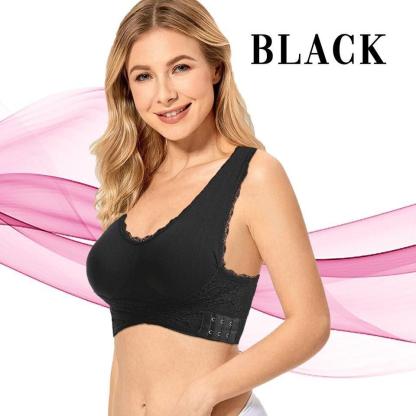 Seamless Lift Bra with Front Cross Side Buckle, Plus-Size Wirefree Lift Support Bra