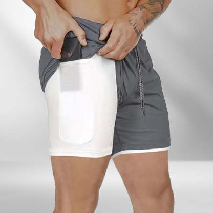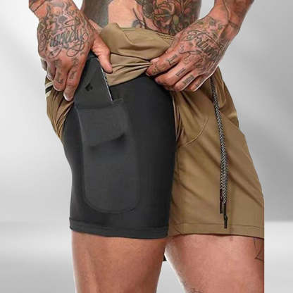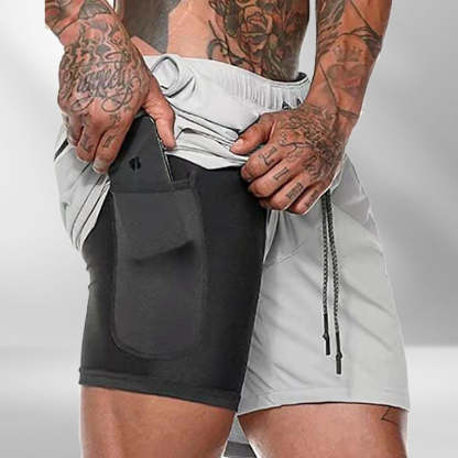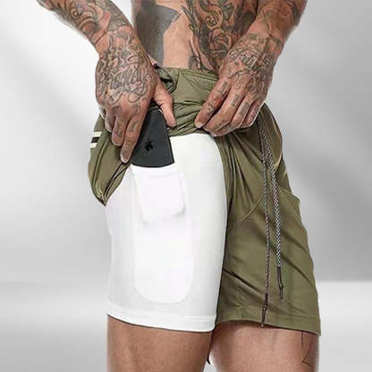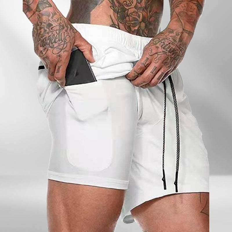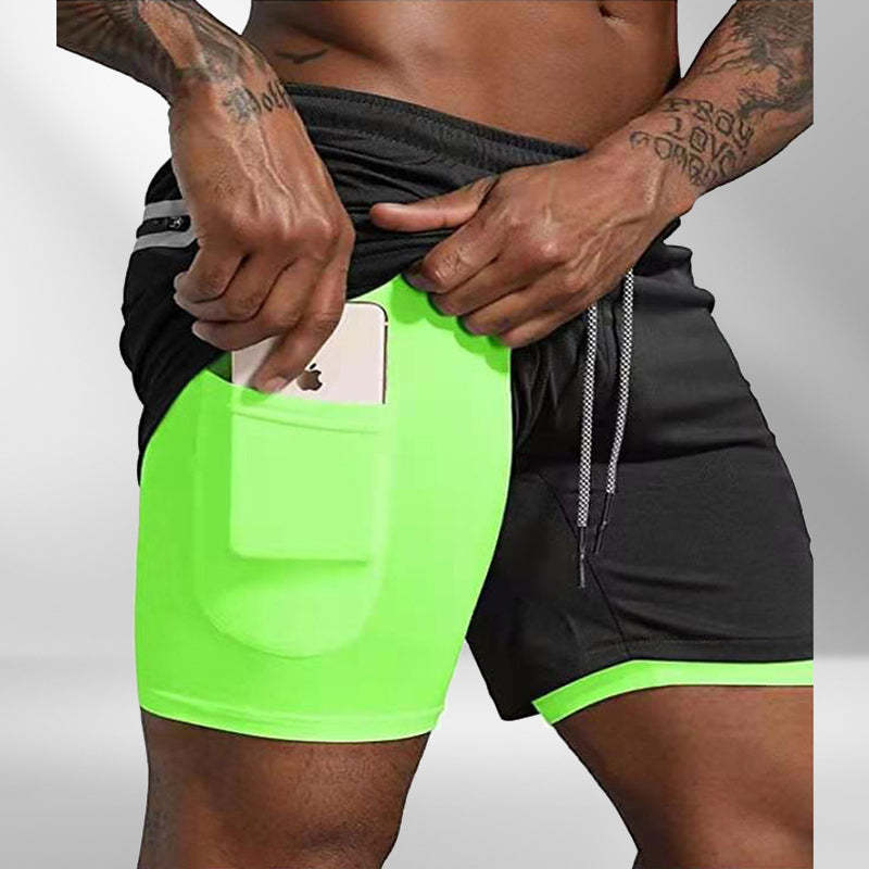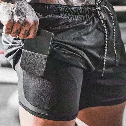 ★ FEATURE OF PRODUCT: Shorts With Built-in Compression Support Thigh Muscle To Improve Performance And Provide More Generous Fit For Extra Mobility----A Liner Phone Pocket To Keep Your Phone Out Of The Way----2 Front Zippered Pockets Keep Your Phone, Keys And Wallet Safe---And One Back Zippered Pocket For Some Extra Storage----Adjustable Contrasting Draw Strings, Easy To Adjust And Secure Support.