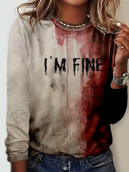 Women's I'm Fine Bloody Halloween Print Long Sleeve T-Shirt