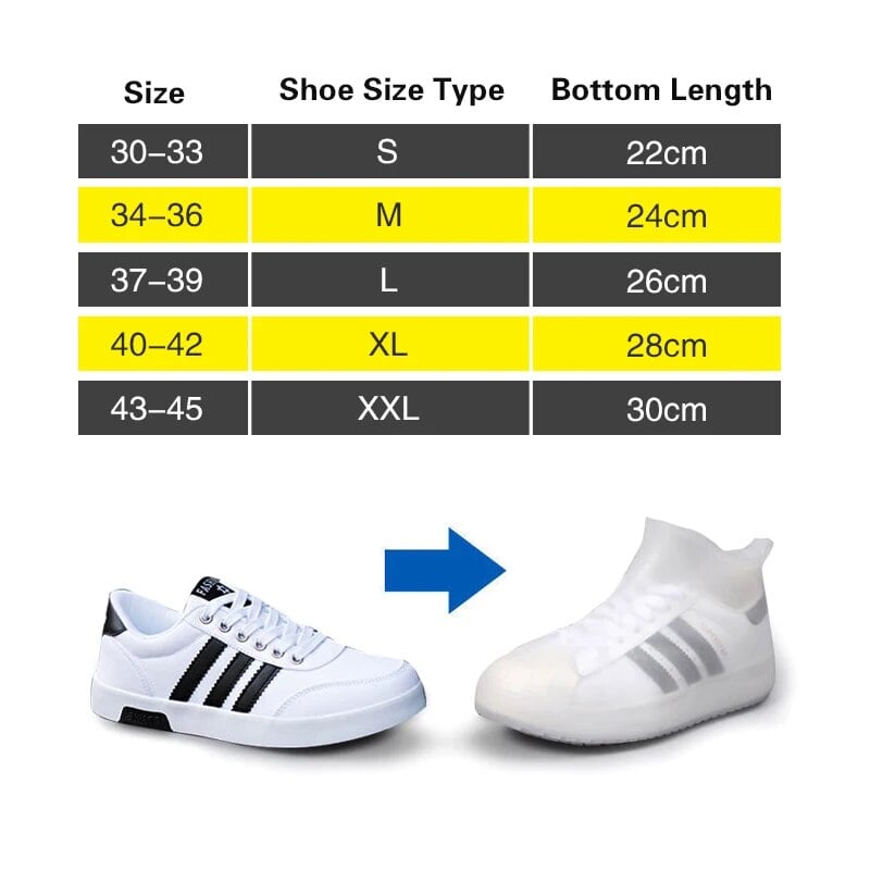 👟【SUPER ELASTIC】👟 The high-class silicone of these thickened reusable rainproof boot covers has excellent elasticity, allowing the shoe covers to be highly stretchable and durable. They can fit perfectly for a variety of shoe sizes, suitable for men and women, big kids and teenagers.