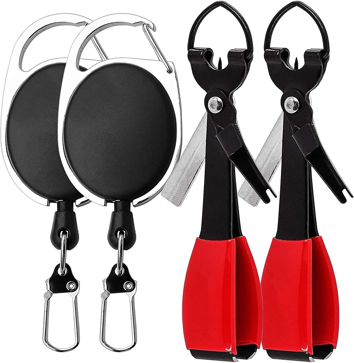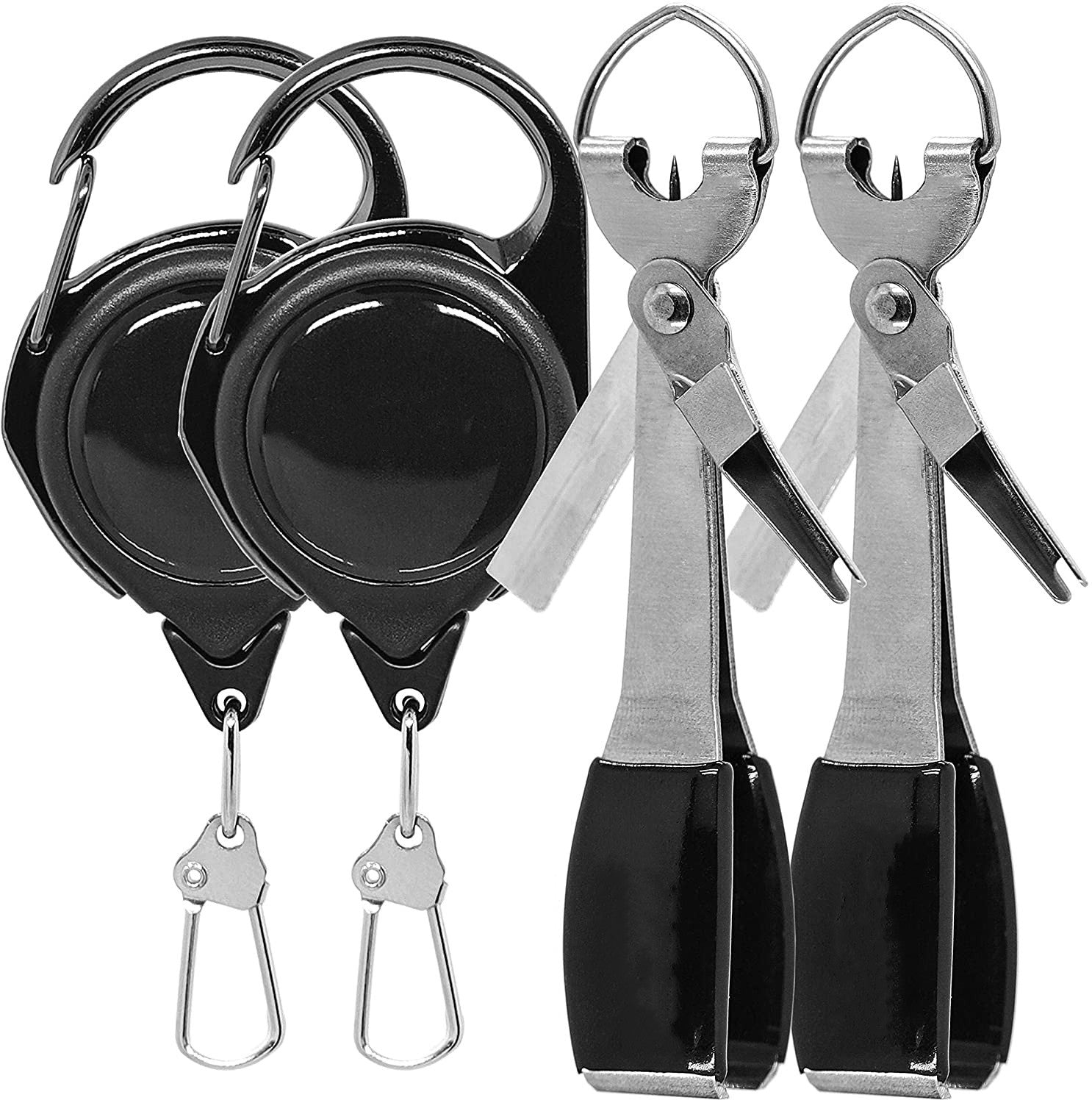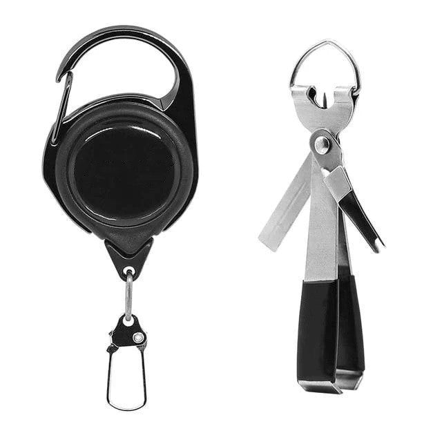 Features hook sharpener, line clippers, jig eye cleaner / line knot picker and knot tyer combo, D-ring use for easy attachment