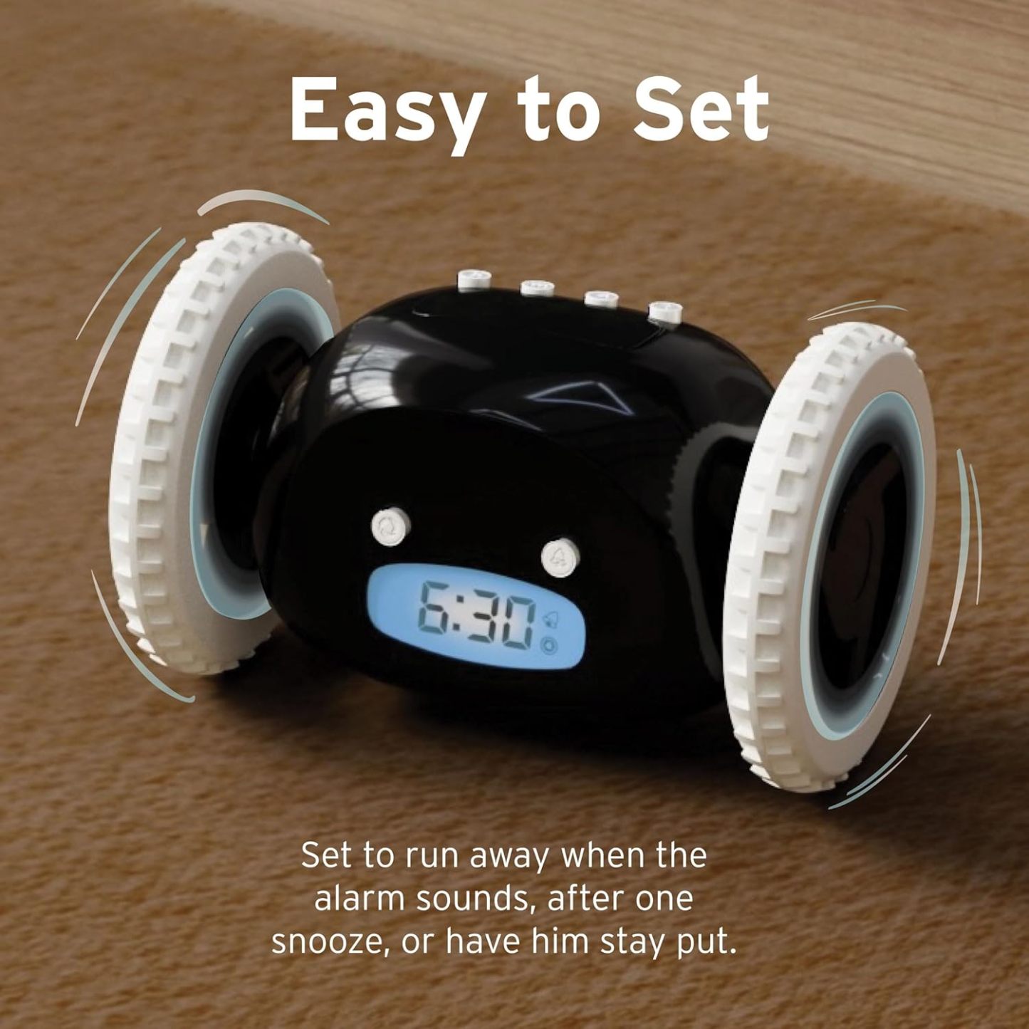 ✅Runaway Clock On Wheels:Clocky is a super loud digital alarm clock that jumps and rolls away in your bedroom, making it the perfect heavy sleepers alarm clock. This jumping alarm clock features a very loud alarm.